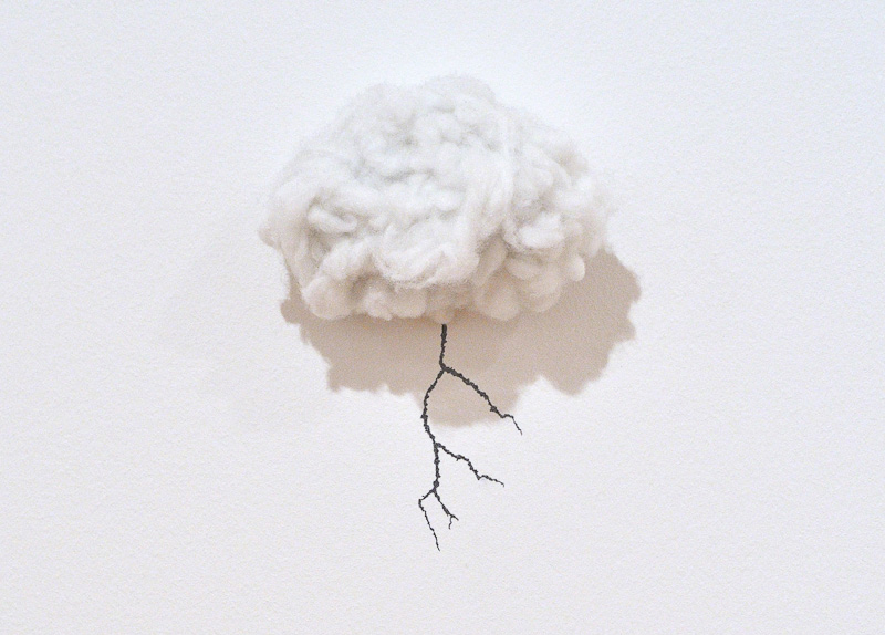 Certain words such as 'escape', 'this' and 'those' hold particular interest for Maire. Showing demonstrative pronouns such as 'this' and 'those' is like holding up an image of an object. Each act involves a process of alienation by separating something out from its context. Stickers have been placed behind patterned glass – square patterns that hint at the Dürer table. Instead of depicting the world with the use of the grid, fragmented images have been placed behind the grid to produce ideas. Maire's images are to be read and his words seen as he aims to give the image the power of the concept and the concept the power of the image. Amongst the stickers we find the wing of the angel of the annunciation (by Leonardo Da Vinci), the finger of John the Baptist (by Leonardo Da Vinci), and clouds (painted by Man Ray). Perhaps Maire's stickers and texts can be seen as idioms – as a manifestation of the peculiar, a form of expression through which you can see a word and figure concepts. For instance: having a nose stands for having a certain intuition, a common element between art and philosophy.